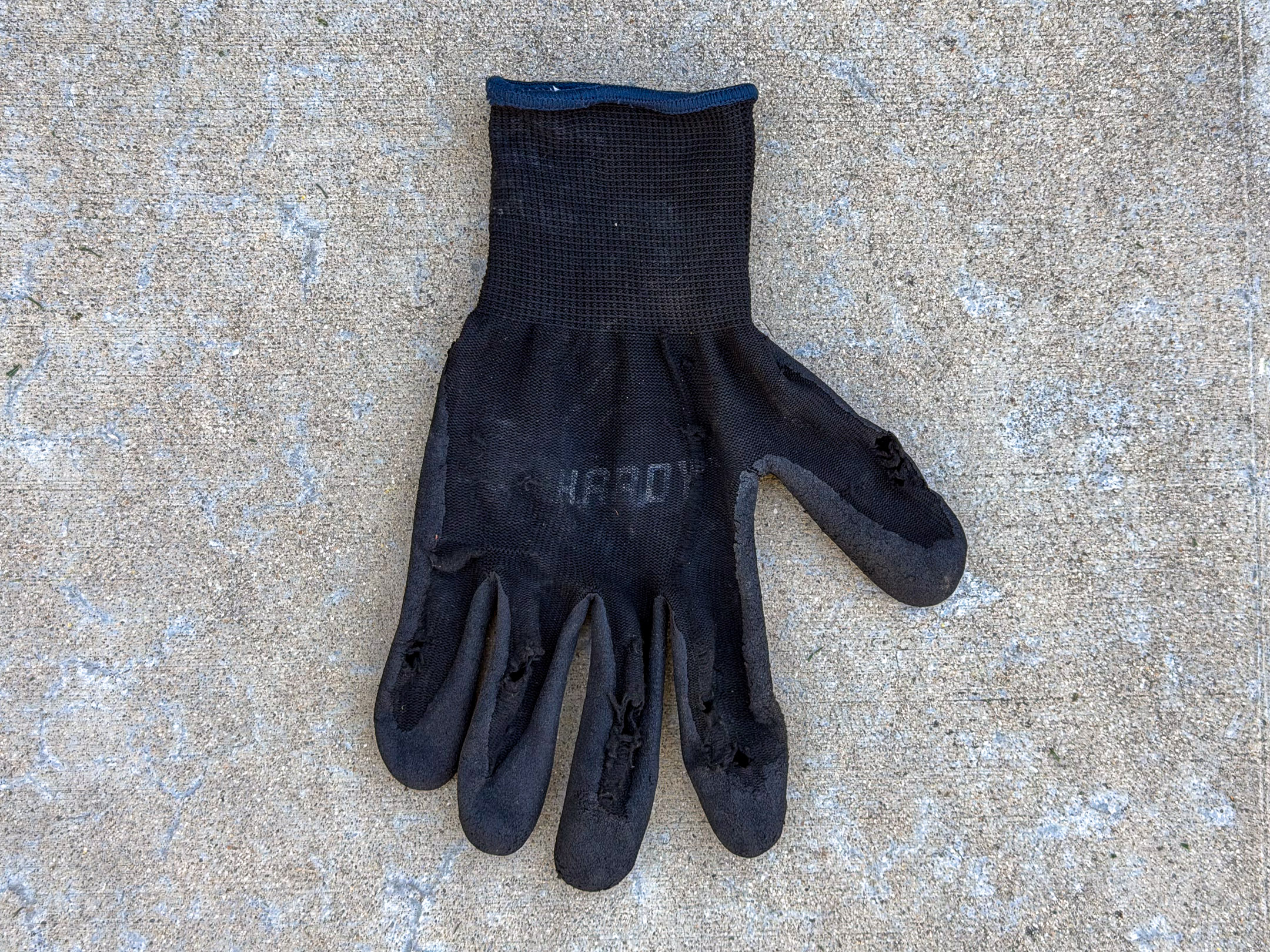 Stuff I Found Running By Uhl Apr 9, 2026 Eagle, ID Hardly hardy. Black, soiled Hardy work glove with visible wear and holes on each finger and the thumb. PrevOlderStuff I Found Cycling